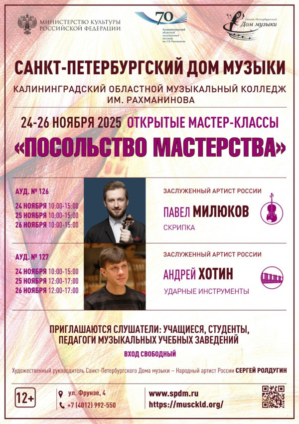 Расписание мастер-классов: Калининградский областной музыкальный колледж им. Рахманинова