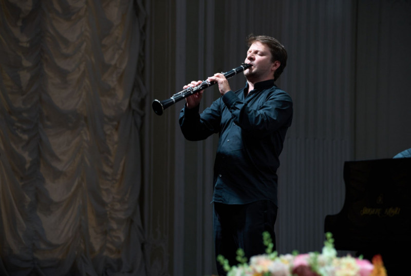 Дариус Мийо — известный французский композитор, педагог и музыкальный критик, один из членов знаменитой «Шестерки», автор значительного количества произведений разных жанров (им написано в целом около 500 опусов). Как композитор, Д. Мийо испытал на себе влияние различных современных художественных течений, его музыка пронизана элементами конструктивизма, в ней ярко проявляются и джазовые черты. Сюита «Скарамуш» для двух фортепиано была написана Д. Мийо в 1937 году, а уже в 1939 году автором была создана редакция сочинения для кларнета с оркестром (фортепиано). Скарамуш — персонаж итальянской комедии дель арте, балагур и весельчак, ставший героем знаменитого романа Р. Саббатини. Каждая часть сюиты Д. Мийо — словно эпизод, в котором главный герой раскрывается в разных ситуациях. Озорная первая часть (Vif) строится на картинном чередовании стремительных и относительно спокойных эпизодов. Вторая часть (Modere) — лукавая лирическая сценка, где грациозность соседствует с неуклюжестью. В последней части сюиты проявилось увлечение Д. Мийо бразильскими песнями и танцами; в качестве финала композитор вводит «Бразильеру» — зажигательную самбу с ее феерическими вариациями и неподражаемой ритмикой.
