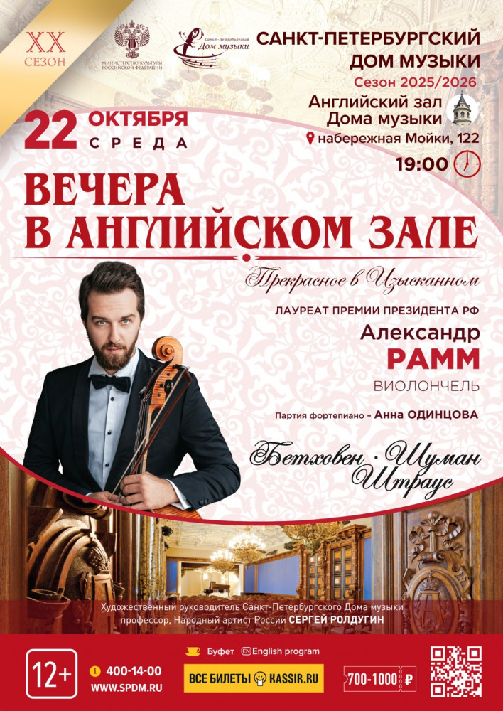 «Вечера в Английском зале». Сольный концерт лауреата премии Президента РФ, виолончелиста Александра Рамма |
